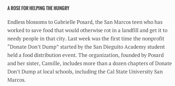 1/20/12 “Making a difference, Encinitas TeenCoFounded Nonprofit to Tackle Hunger” Union Tribune Newspaper